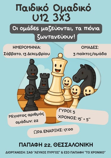 Το πιο ομαδικό και διασκεδαστικό παιδικό σκακιστικό event επιστρέφει το Σάββατο 13 Δεκεμβρίου 2025 στην Παπάφη 22!